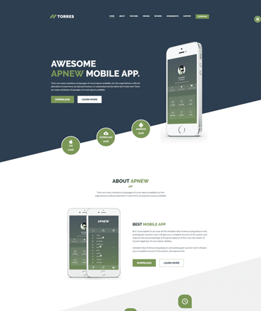 Torres App Landing React Template will be second to none when it comes to choosing a faster-loading and modern landing page React JS Template. Crafted with great potential, this unique React JS template is suitable for a stunning mobile app landing page. Torres is powered by React v16.8.6, Bootstrap 4.3.1, HTML 5, CSS3, SCSS and W3C validated markup and rocks a clean and stunning look with all the necessities to start working on your project immediately.