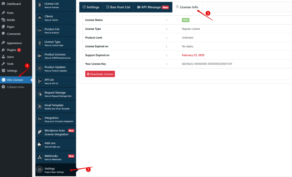 3. After activation, you will get a menu for Elite Licenser in your WordPress dashboard. Go to Elite License > Setting > License Info