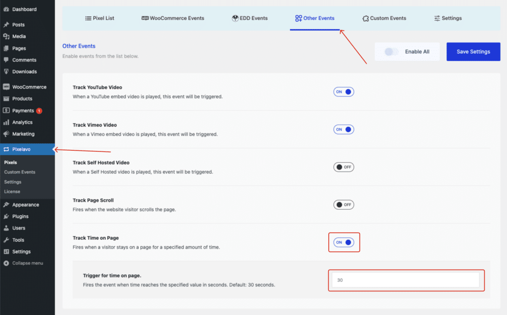 - Enable Track Time on Page: Locate the “Track Time on Page” feature and enable it.