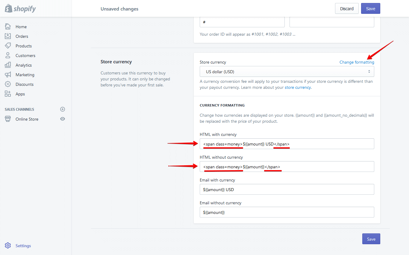2. Scroll down and then you will see a “Standards & formats” block. Find the “Currency” there
