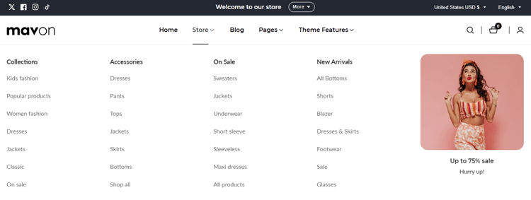 The top menu should include essential categories like Shop, About Us, and Contact Us. It’s important to keep the menu simple and clear. Avoid using jargon or clever wording. This helps your visitors navigate your site quickly and efficiently.
